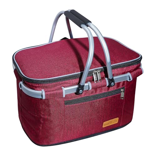 - einkaufskorb faltbar Das Klappgriff-Design und die leichten Eigenschaften ermöglichen es Ihnen, unsere Kühltasche oder unseren Picknickkorb überall hin mitzunehmen. Bei Nichtgebrauch kann der Rahmen aus Aluminiumlegierung zur einfachen Aufbewahrung zusammengeklappt werden Dank des Klappgriffdesigns können Sie unseren Picknickkorb oder Einkaufskorb zu Ihrem Aktivitätsort mitnehmen.